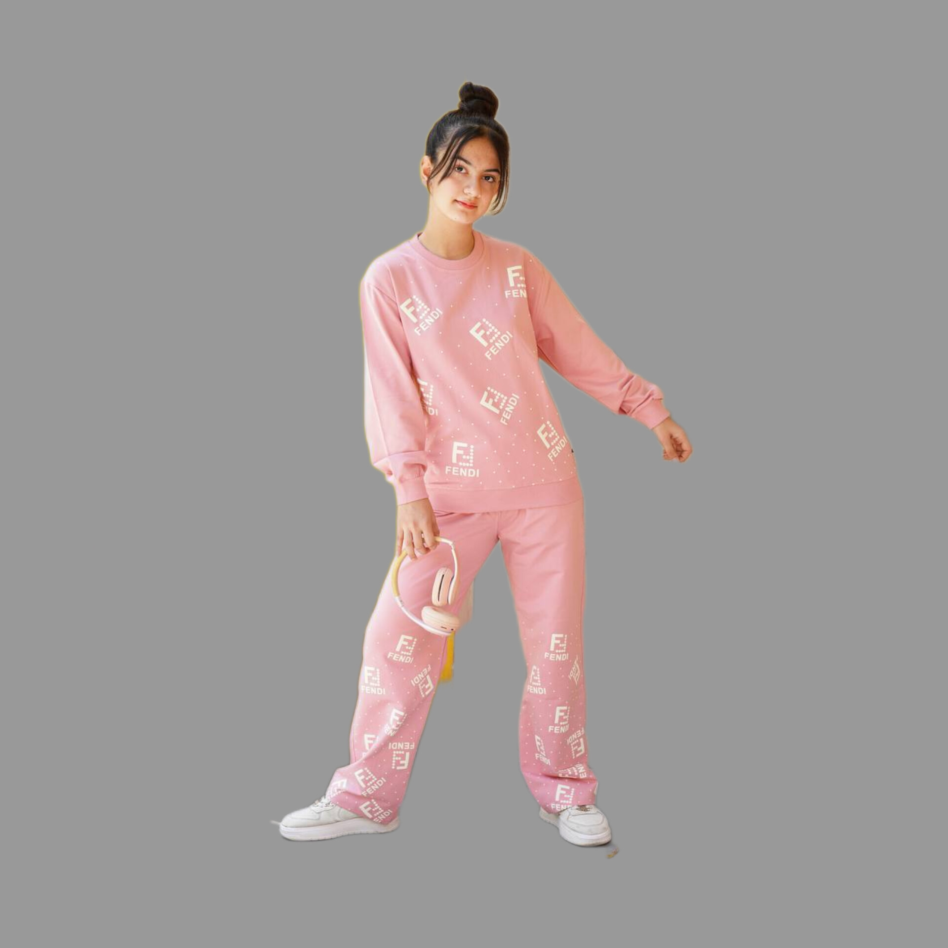 بلوز شلوار دخترونه طرح فندی جنس دورس پنبه اعلا